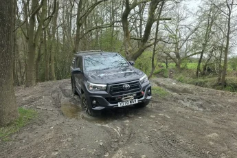 Beyond Driving client with Land Rover Defender and Toyota Hilux at Peterborough off-road site